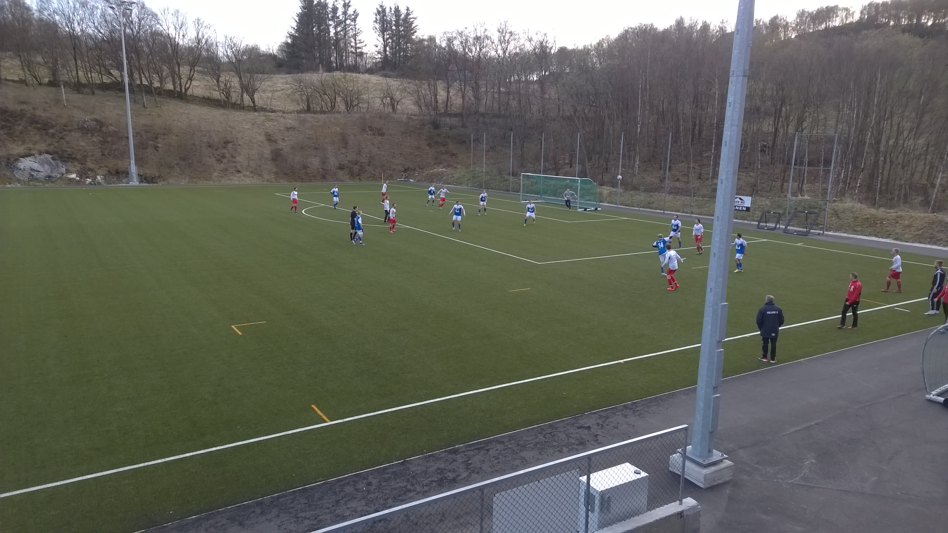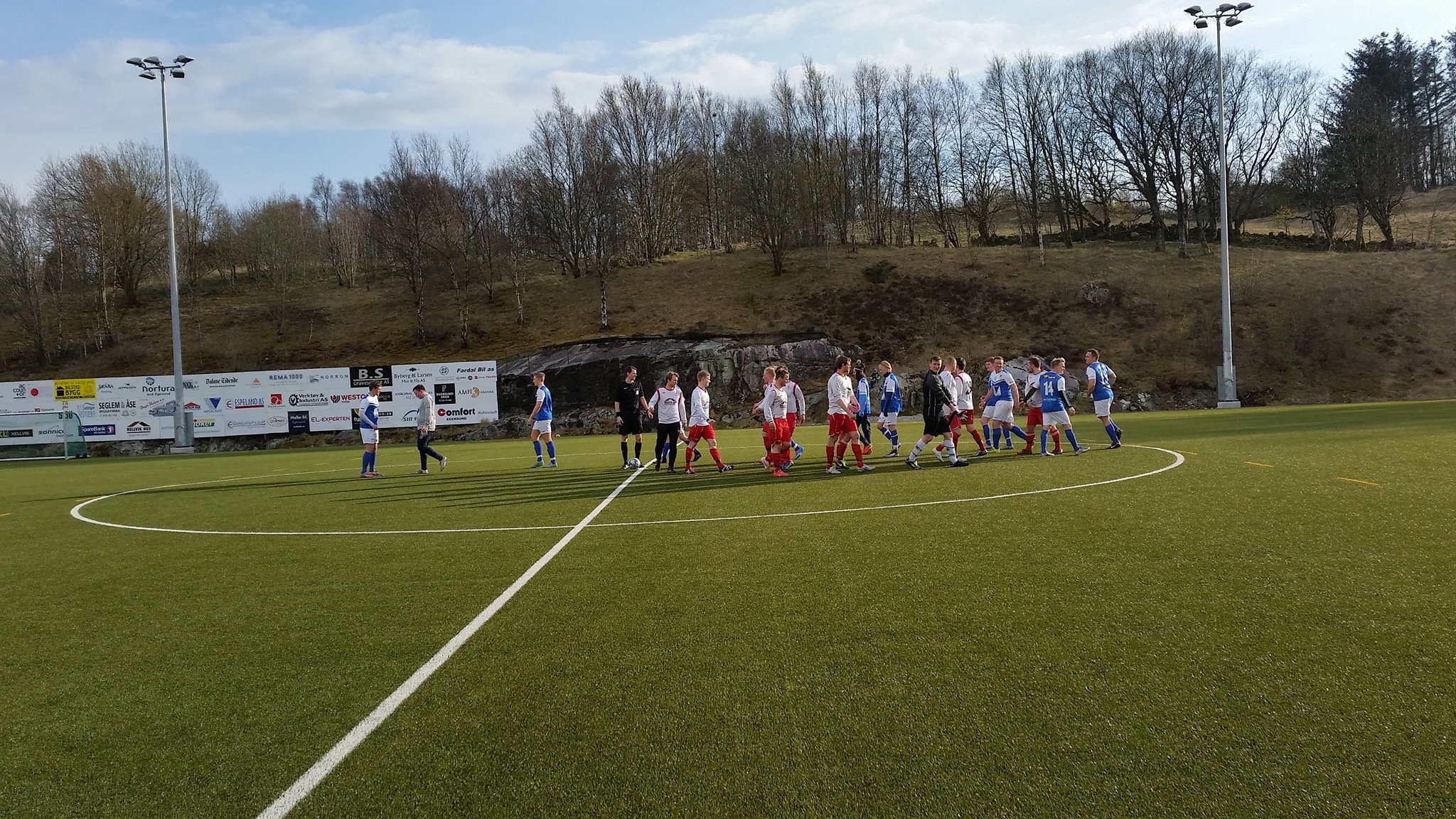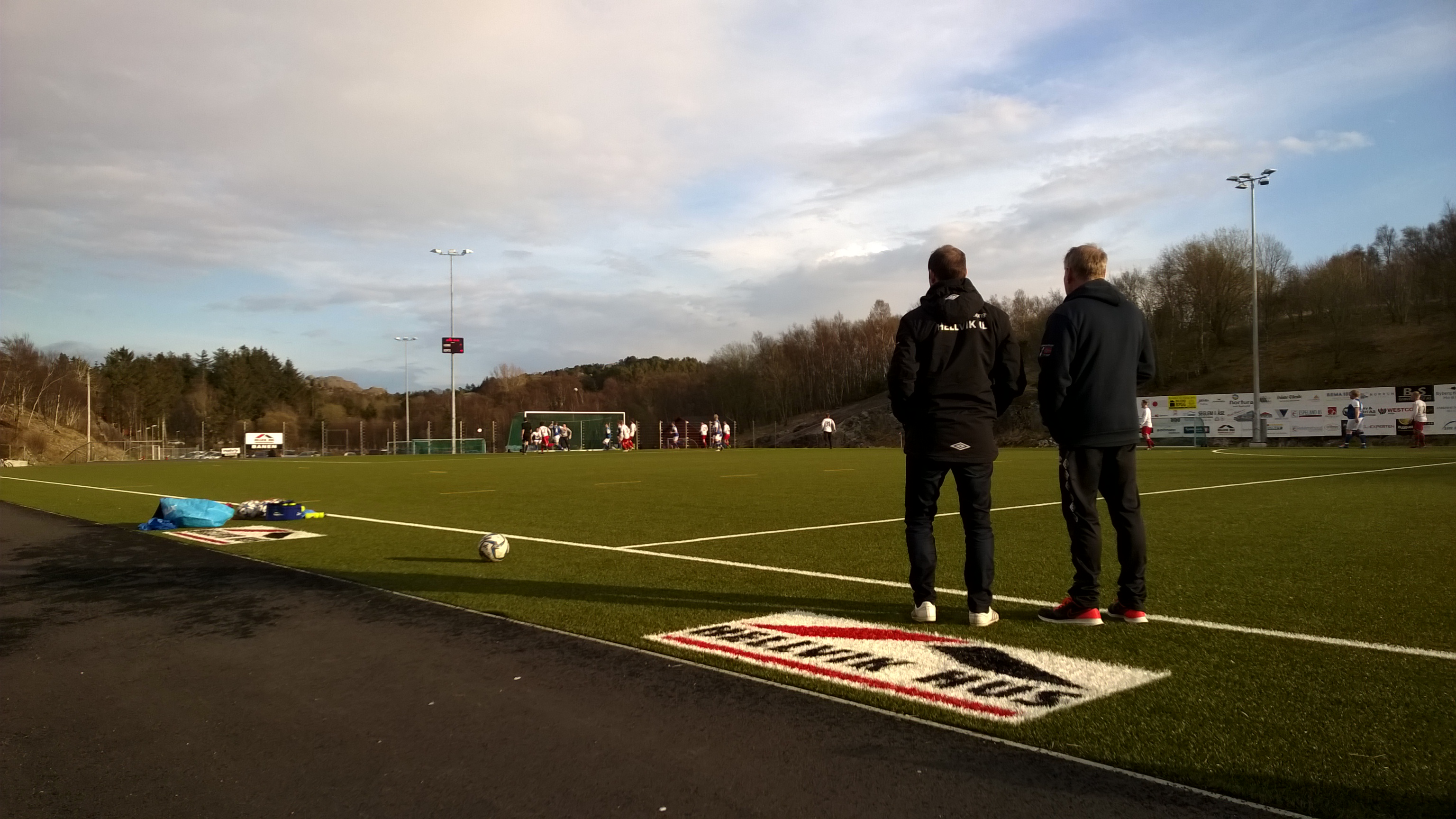 I vinter spilte lagene mot hverandre i treningskamp, og da vant Hellvik hele 7-0. Kan hende dette lå litt i hodene på spillerne når kampen startet, for kun 14 minutter ut i kampen lå Hellvik under 0-2 etter at først Vegard Lomeland satte straffen før kampstart og Alexander Sleveland driblet i feltet og puttet deres andre. Hellvik hadde egentlig god kontroll etter dette, men egne sjanser uteble, mye pga. svake avleveringer og litt tafatt duellspill. Etter 35 minutter var Hellvik også noe heldige når de reduserte. Marius Grastveit fikk ballen på venstrekanten og la inn mot mål. Ballen fikk en fin bue og overlistet en nølende keeper til 1-2.